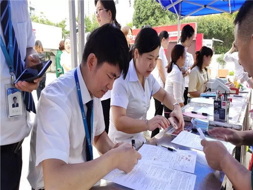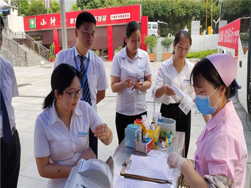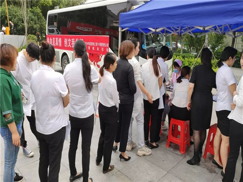 前來獻(xiàn)血的居然家人們?cè)谥驹刚叩囊龑?dǎo)下,有序領(lǐng)表登記,測(cè)定血型,量血壓,等待獻(xiàn)血。